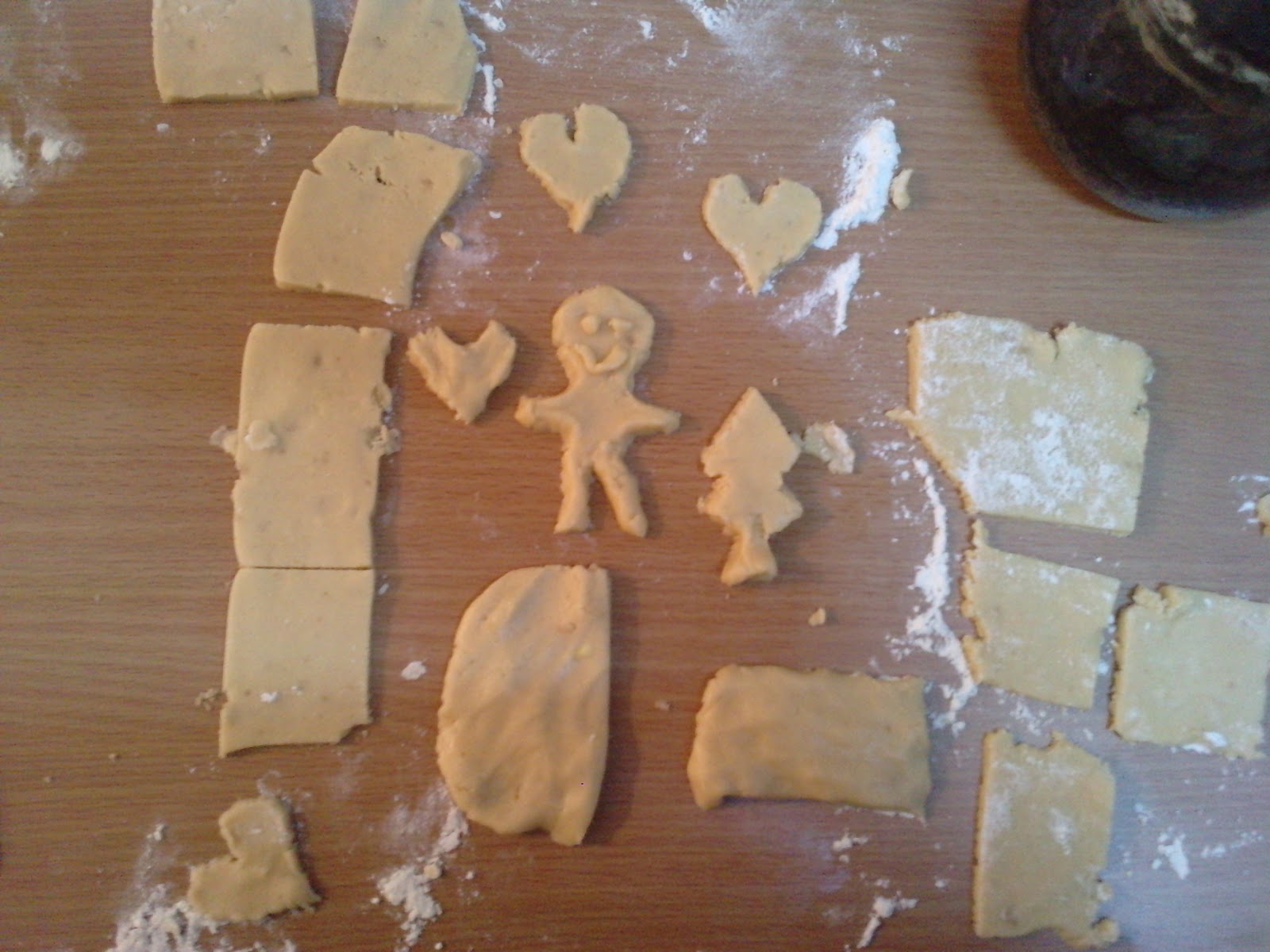 Duas taças de farinha, meia de maizena, uma de açúcar amarelo, 200 g de manteiga, um ovo, gengibre qb, fermento em pó (1 colher de chá) e 70 g de mel